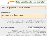Donnez un titre à l’itinéraire et un texte d’introduction. Cliquez sur "enregistrer", et c’est parti ! Pas besoin de s’inscrire.
