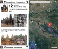 Textes et photos sont accessibles dans la bulle flottante de chaque étape, à portée d’un clic. Une barre chronologique permet de naviguer dans le temps.