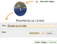 Pour chaque étape, posez le point sur la carte puis donnez un titre et une date.
